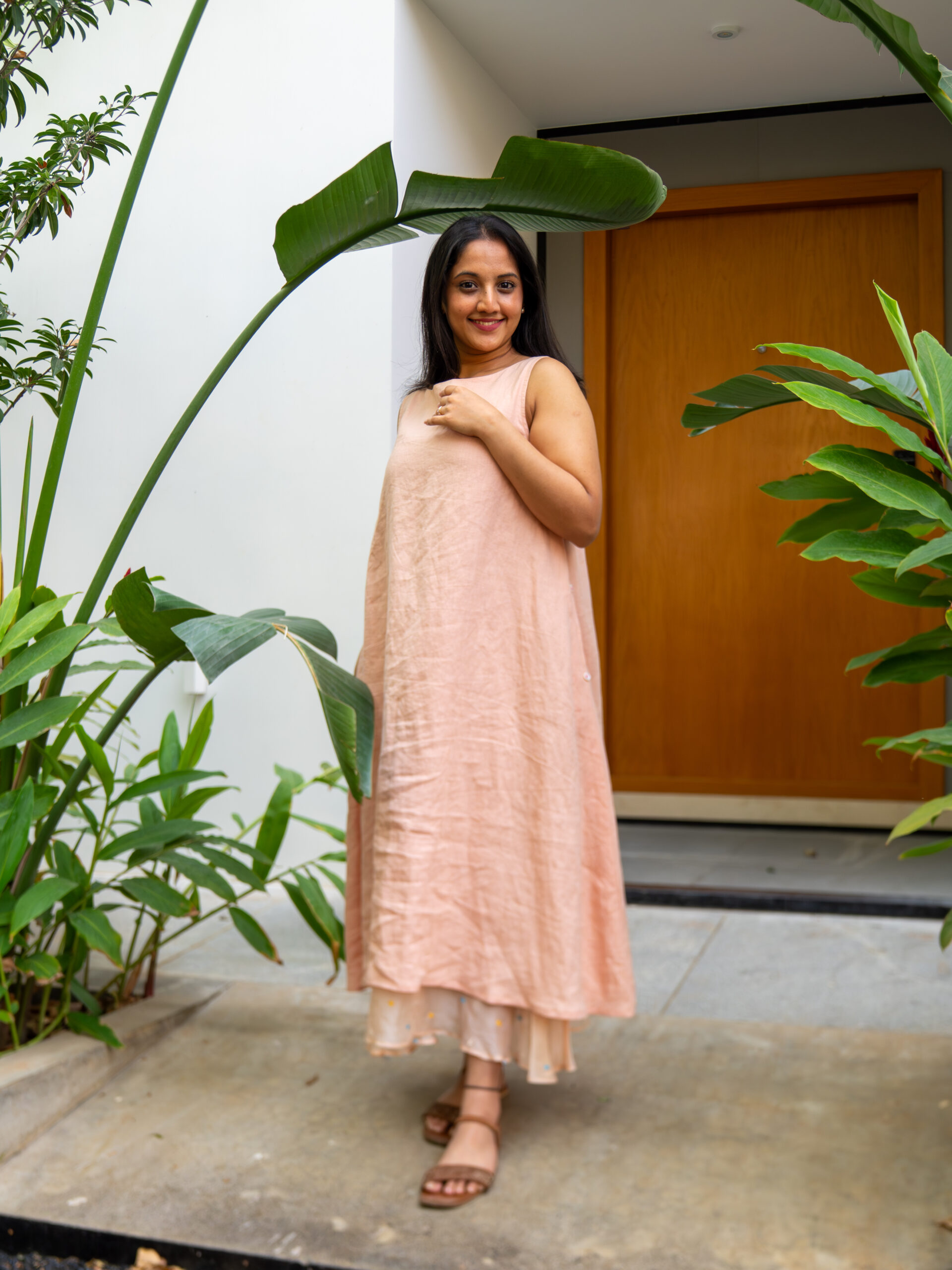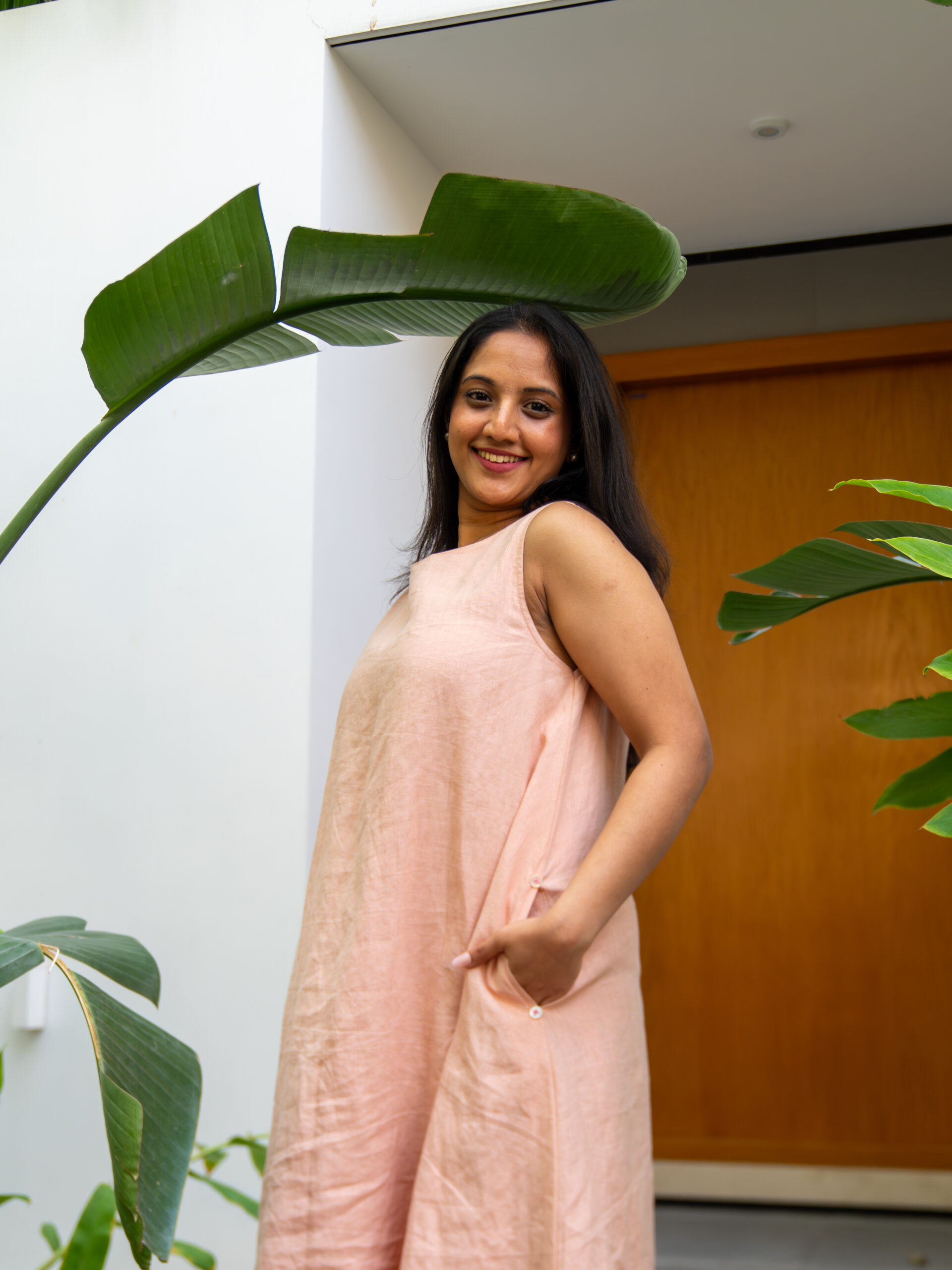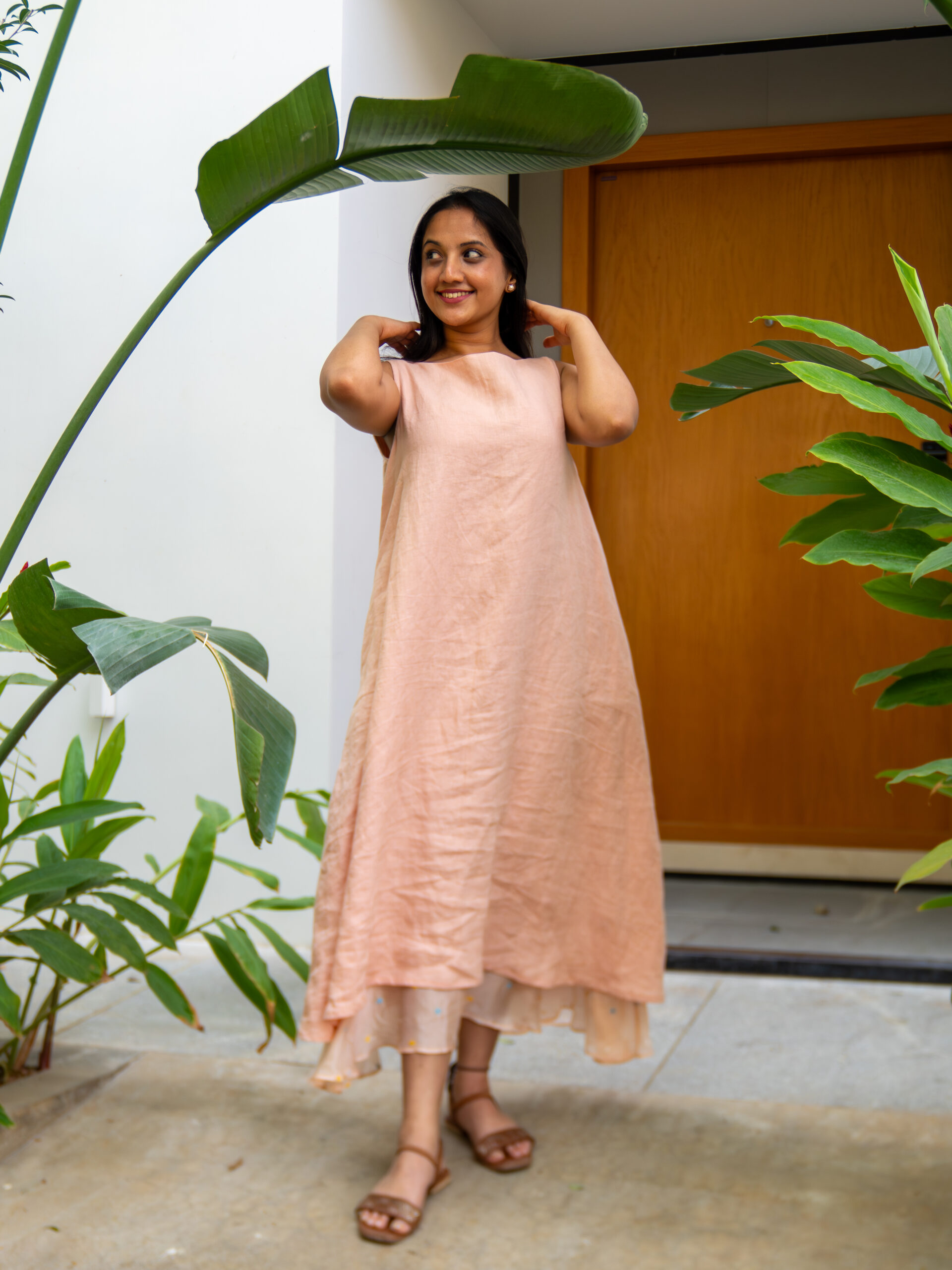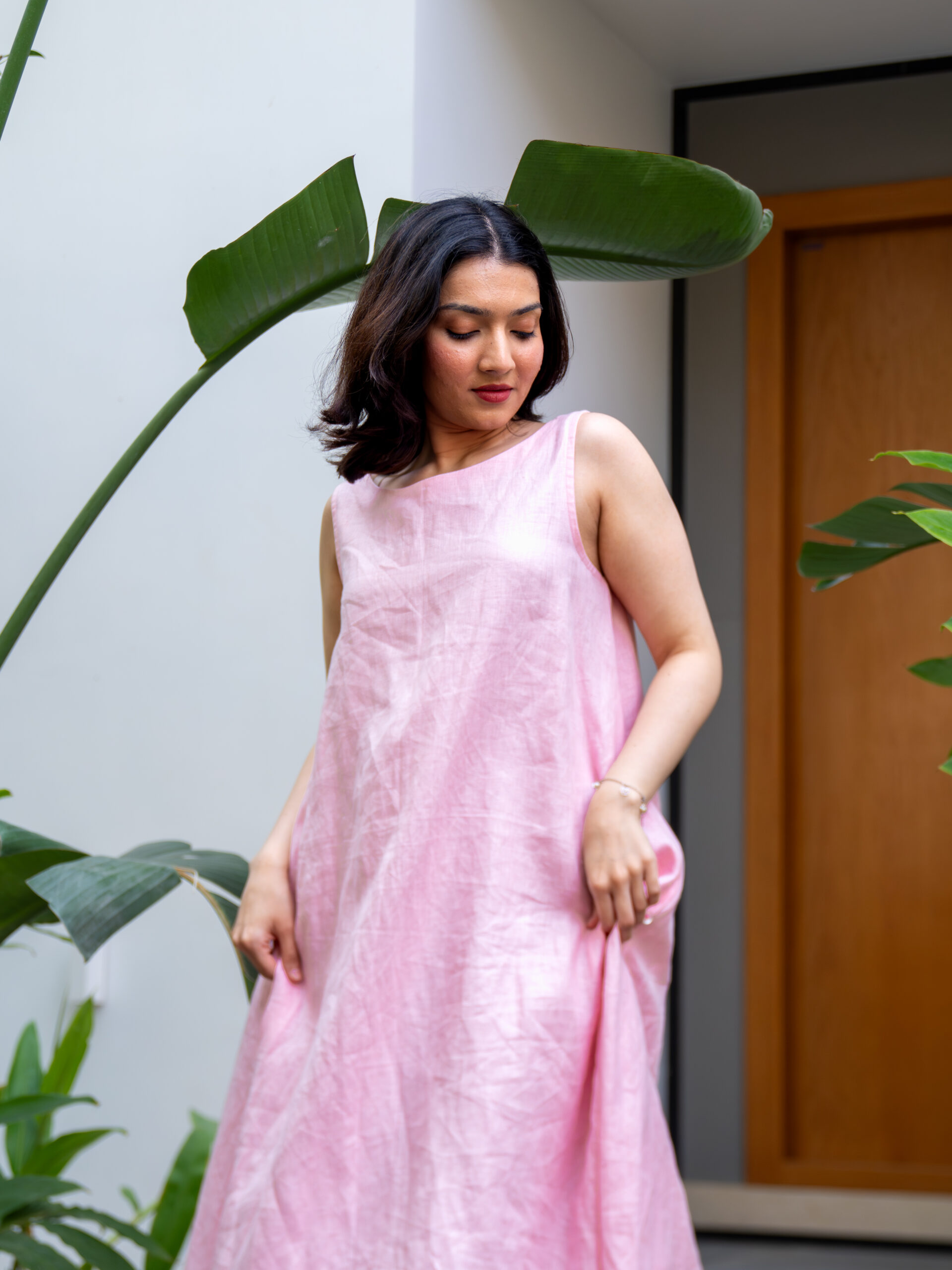 Introducing our understated linen long dress—crafted in a breathable, airy fabric that feels as effortless as it looks. Designed in a relaxed A-line silhouette, it drapes softly over the body, creating a fluid, elongated shape perfect for warm days.